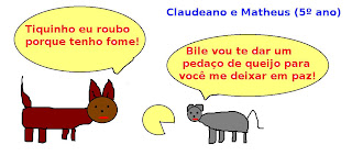 - Tome este pedaço de queijo e corra, porque meu dono está vindo ai e pode te matar.